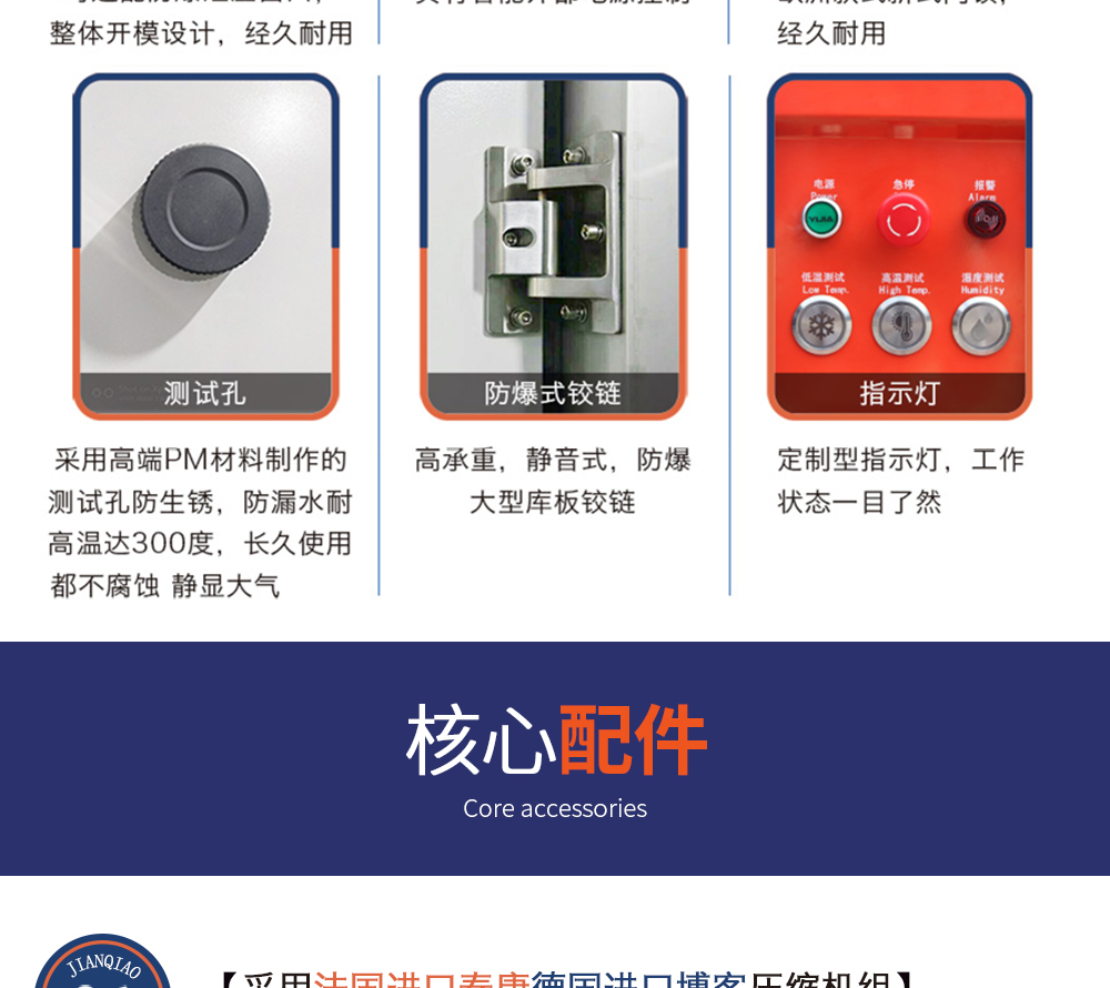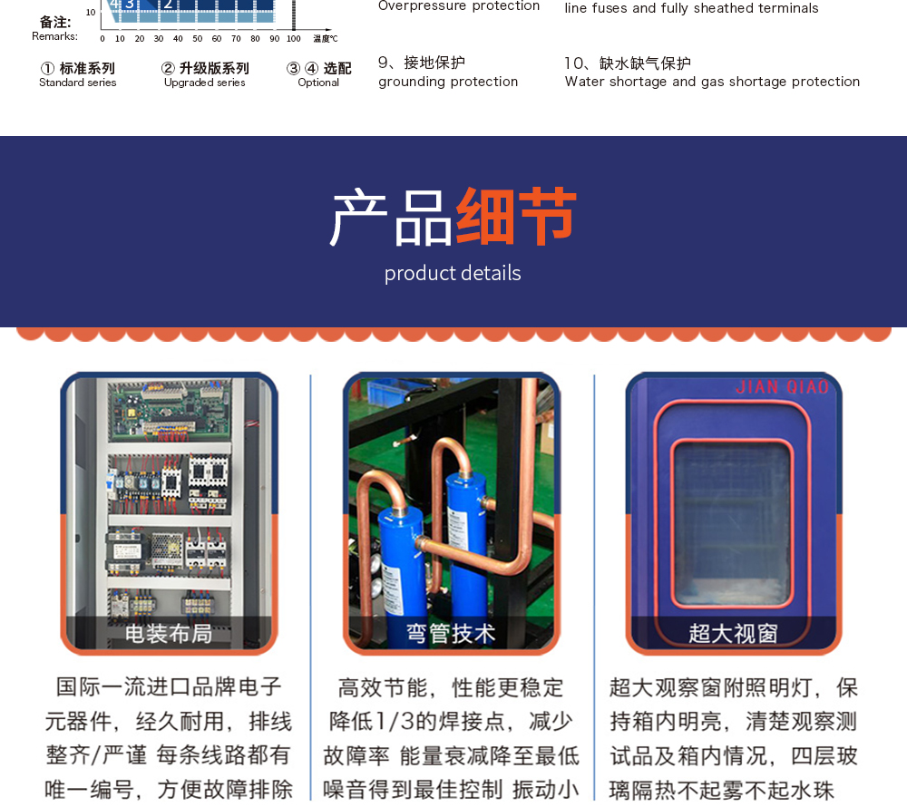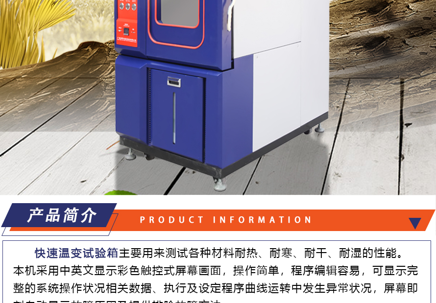 產(chǎn)品型號(hào):JQESS-100 品牌:劍 喬 用途:快速溫變?cè)囼?yàn)箱主要用來測(cè)試各種材料耐熱、耐寒、耐干、耐濕的性能。本機(jī)采用中英文顯示彩色觸控式屏幕畫面,操作簡(jiǎn)單,程序編輯容易,可顯示完整的系統(tǒng)操作狀況相關(guān)數(shù)據(jù)、執(zhí)咨詢熱線:13829135130