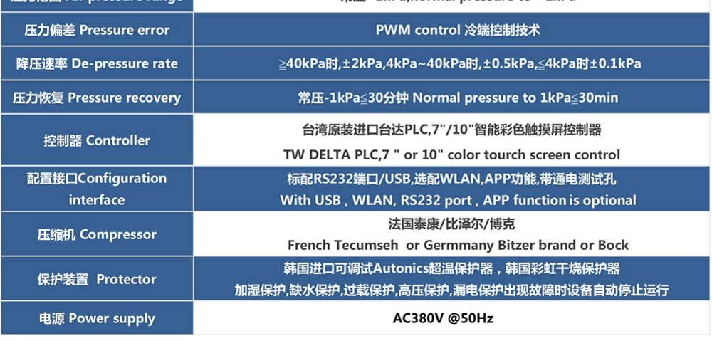 3.外部壓力型框體結構和不銹鋼水箱設計,合理的空氣循環系統和科學布局的加熱、制冷系統。