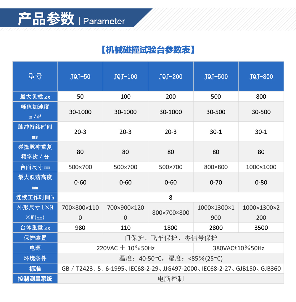 產(chǎn)品型號:JQJ-100 品牌:劍 喬 用途:機(jī)械碰撞試驗(yàn)臺模擬仿真裝備及組件在使用與運(yùn)輸過程中,可能遭遇的沖擊效應(yīng)為主,并透過沖擊波于瞬間瞬時(shí)能量交換,分析產(chǎn)品承受外界沖擊環(huán)境之能力,試驗(yàn)之目的在于了解其機(jī)咨詢熱線:13829135130
